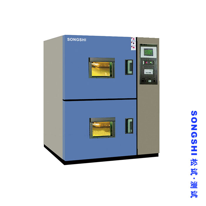 ?提籃在高低溫室內(nèi)切換轉(zhuǎn)移,采用氣動(dòng)控制,轉(zhuǎn)換時(shí)間短,溫度恢復(fù)時(shí)間短,溫變速度快,設(shè)備整體結(jié)構(gòu)緊湊,體積小,采用兩箱法,提高了工作室的溫度均勻性,但試件一直處于動(dòng)態(tài),工作室不能留有測試孔,因此不能帶電、帶信號(hào)、帶氣源測試